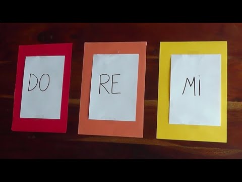 3. Introduim les notes musicals de la cançó. Ho farem amb les notes do, re, mi. Cantem la cançó dient el nom de nota.